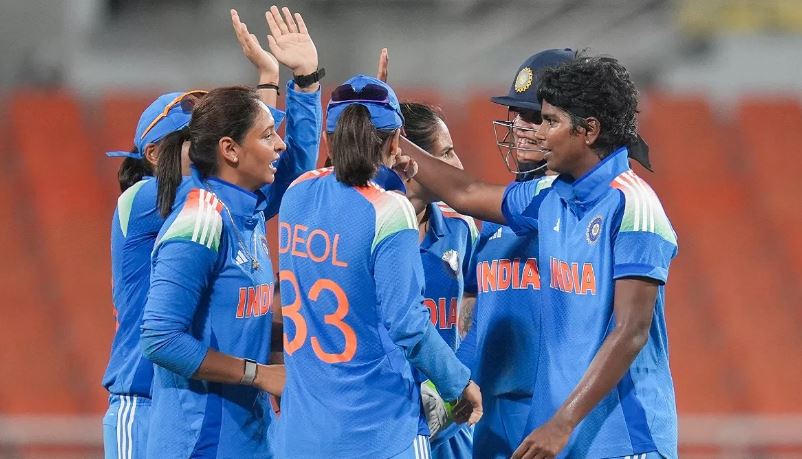 भारत की तरफ से क्रांति गौड़ सबसे सफल गेंदबाज रही, जिन्होंने 5 ओवर में 31 रन देकर तीन विकेट झटके। इसके अलावा रेनूका सिंह, अरुंधती रेड्डी, श्री चरणी और स्नेह राणा को एक-एक विकेट मिला।