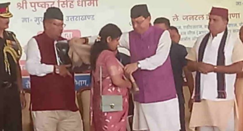 सीएम पुष्कर सिंह धामी आज लैंसडोन पहुंचे। यहां उन्होंने सम्मान समारोह में शहीदों के परिजनों को सम्मानित किया। इस दौरान सैनिक कल्याण मंत्री गणेश जोशी भी मौजूद रहे।