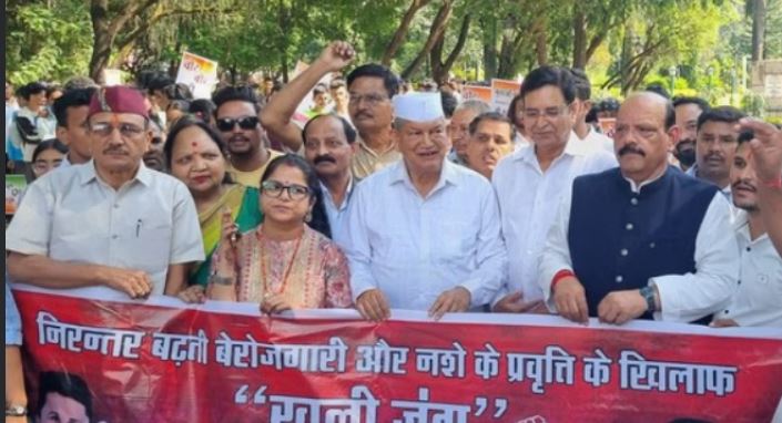 पूर्व मुख्यमंत्री हरीश रावत ने कहा कि यह सिर्फ नौकरियों की लड़ाई नहीं, बल्कि उत्तराखंड के भविष्य को बचाने का आंदोलन है। युवाओं की यह चेतना आने वाले परिवर्तन की गूंज बनेगी। विधायक प्रीतम सिंह ने कहा कि धामी सरकार युवाओं को रोजगार देने में पूरी तरह विफल रही है। हरीश जोशी ने कहा, प्रदेश के कॉलेजों के आसपास नशे के अवैध कारोबारियों का मकड़जाल फैलता जा रहा है और प्रदेश का युवा उसमें जकड़ता जा रहा है। चेतावनी देते हुए कहा कि अब हमारी आवाज को दबाया नहीं जा सकेगा और यह जंग जारी रहेगी। इस दौरान पूर्व मंत्री शूरवीर सिंह सजवान, मुख्य प्रवक्ता गरिमा मेहरा दसौनी, पूर्व महानगर अध्यक्ष लालचंद शर्मा, पूर्व विधायक राजकुमार, महेंद्र नेगी, सुरेंद्र रांगड़, सुशील राठी, राजेंद्र शाह, नवीन रमोला, सोनू हसन आदि मौजूद रहे।
