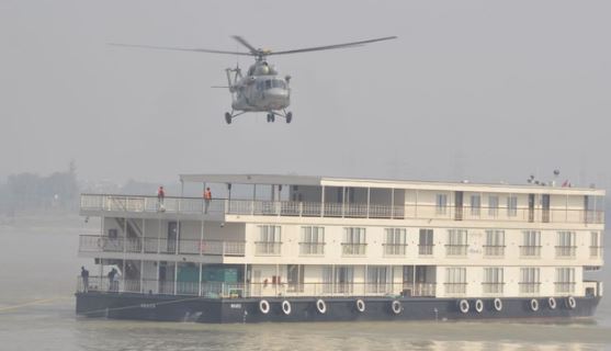 लगभग 30 से 40 मिनट तक हेलिकॉप्टर क्रूज के ऊपर मंडराता रहा और इस बीच घाट पर बैठे पर्यटक और नाविकों ने दूर से ही अपने मोबाइल से इस दृश्य को अपने कैमरे में कैद किया। कुछ लोगों ने सोशल मीडिया पर भी वीडियो और फोटो साझा किए।