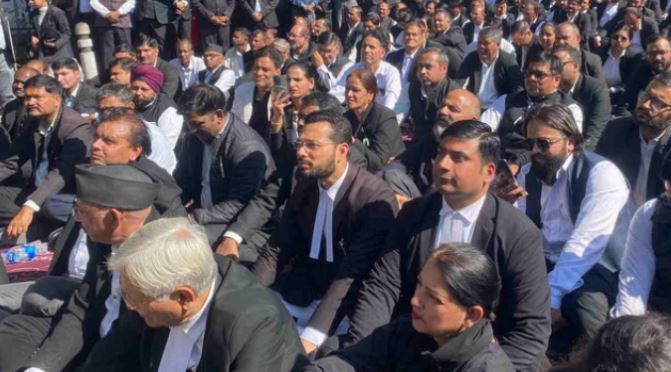 पुराने जिला जज अदालत परिसर के सिविल परिसर में स्वास्थ्य विभाग की ओर से रैन बसेरा बनाए जाने के प्रस्ताव के खिलाफ देहरादून बार एसोसिएशन के अधिवक्ताओं ने सोमवार से विरोध प्रदर्शन की शुरुआत कर दिया है। मांग को लेकर आज मंगलवार को भी देहरादून के वकील सड़क पर उतरे, लेकिन विरोध का तरीका जरा हटके दिखा।